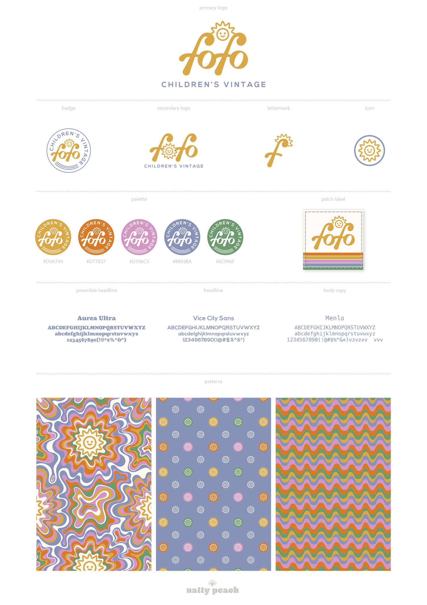 The branding is playful and bright, incorporating bold custom patterns and nostalgic imagery to create a fun, kaleidoscopic collage. The sun icon is representative of KB's first love, her little dog, Elio.